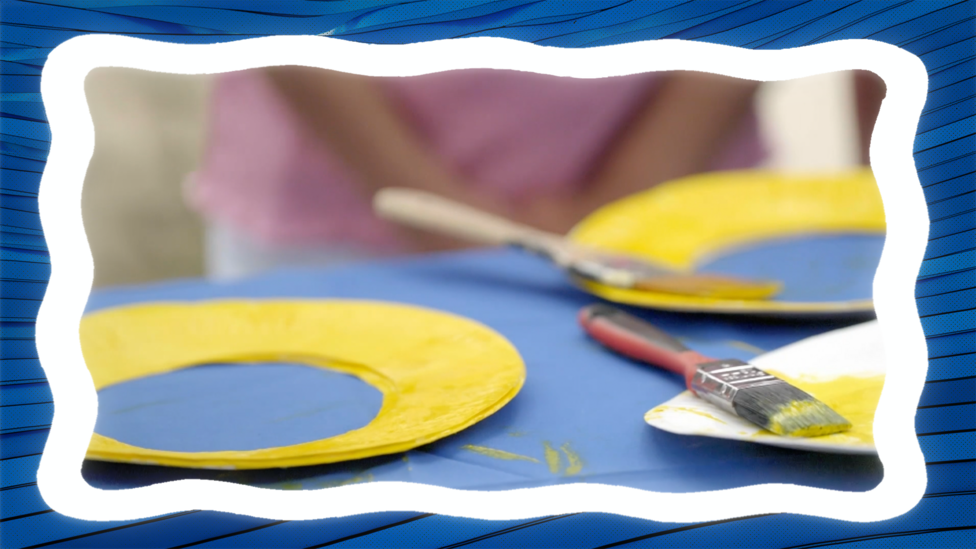 First, we need to make our hoops. Softly fold the paper plates in half to make a semi-circle. Cut round the inner circle of the plate to make your ring. (Get a grown-up to help you when using sharp objects)