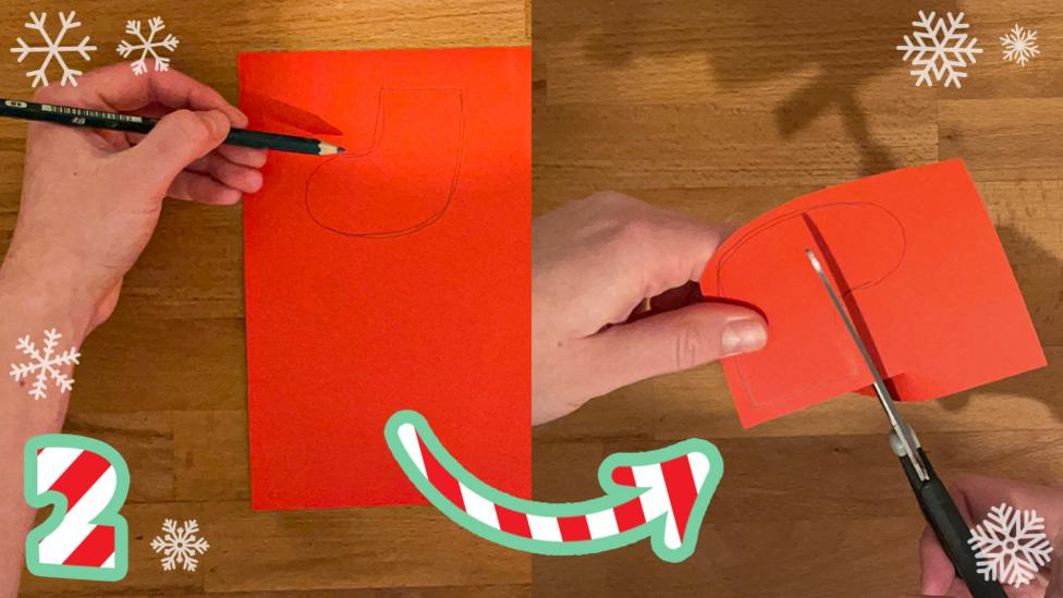 Take another piece of card and, with a pencil, draw a stocking shape. You can go as big or as small as you want, but make sure that your stocking shape fits comfortably on your sock with at least 5mm spare around the edge.