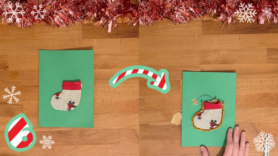 ✨ Pop your gift in your stocking before gluing so you can check how it will look once it is stuck. Once you are happy with how it looks, remove your gifts before sticking. You don't want sticky gifts!