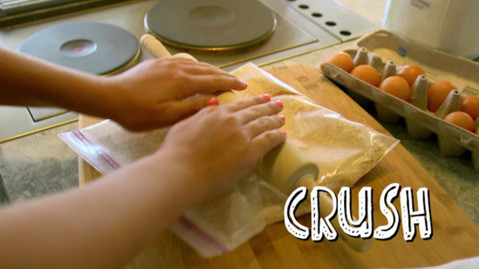 Place the rice cereal in a plastic sandwich bag together with all the dry seasonings and seal the bag shut. Take a rolling pin and use it to roll and mash the rice cereal until it resembles fine breadcrumbs.