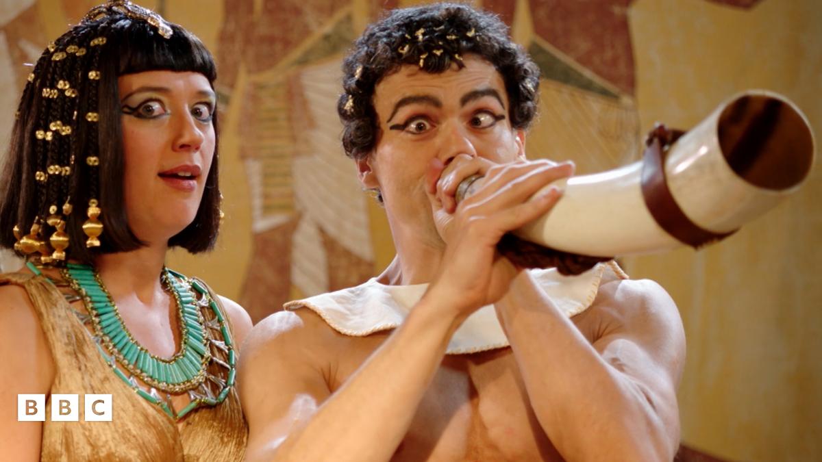 The Horrible Histories Horrible Hearts Club Band take a musical journey through time from caveman beats to One Direction via Gregorian chanting and Elvis!