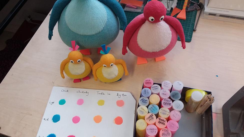 Each Twirlywoo has its own colour swatch — every container is painstakingly marked to keep their colouring consistent throughout the series!