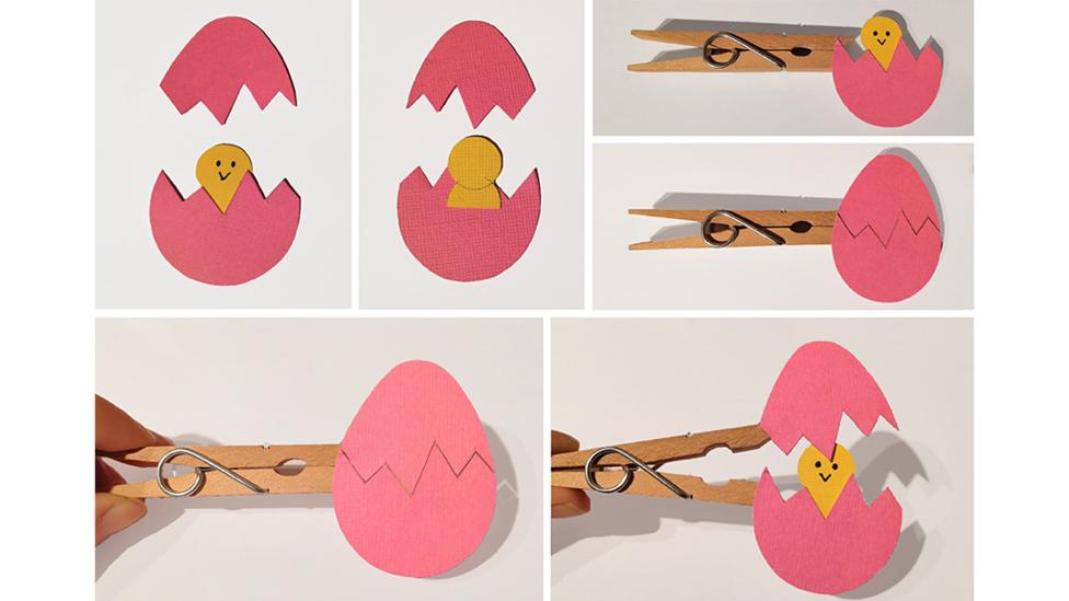 Stick the yellow chick to the back of the pink egg