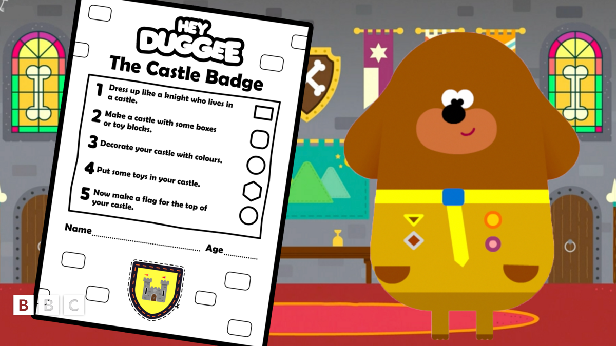 Hey Duggee: Castle Badge Activity SheetPrint out and follow these super fun steps to get yourself your very own Hey Duggee Castle Badge!Get this activityRelated topicsHey Duggee
