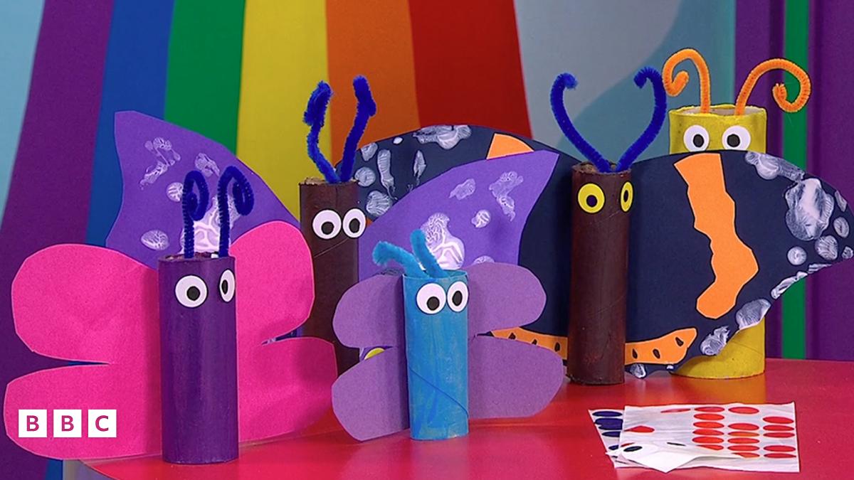 You could add some eyes by cutting out two circles on a piece of white paper and colouring in black circles and then stick them onto the cardboard tube - this will bring the butterfly alive!