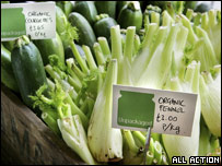 我的女儿拉着John的儿子一头扎进地里摘豆角。John一边做“技术指导”一边说:“其实,经济账是次要的。特别是有了孩子以后,对吃的蔬菜是从哪里来的更在意了。我们自己种菜,不仅是新鲜,更重要的是吃着放心。” John一边说,一边整理着盖在菜花上的网子,那是用来防鸟的。对付蜗牛、鼻涕虫之类吃菜凶狠的家伙怎么办呢?John说,他有空就用手抓,抓不过来就让蜗牛也分享点。他的地里不使用任何带化学成分的东西,收进菜篮子的都是纯天然蔬菜。 没有化肥杀虫剂的污染,没有长途运输对环境的污染,这个帐,就不能按超市里豆角一斤几毛来算了。John省下的,何止150英镑? 纯天然食品需求降温,菜种子销售暴涨 在人们对吃到嘴里的食品的新鲜、健康、安全越来越在意的今天,追求纯天然,是英国正在经历的一场无声的饮食革命。过去10年中,英国的纯天然食品(organic food)的需求势头一浪高过一浪,10年中翻了十倍,成了眼下一年13亿英镑的大生意。