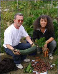 John说,只要天气好,他总是带着儿子一起下地,五岁的儿子已经认识不少蔬菜,撒种育秧的时候也一定要“插上一手”。我的女儿比John 的儿子大三岁,两个小家伙一头扎进地里摘豆角。生活在象伦敦这样的大都市里,这样的童年经历恐怕不是省下的萝卜白菜钱能买到的吧? 说话间,早起阴沉沉的天渐渐放晴,入秋以来不常露面的太阳高高的挂在了头顶。其它地块儿的“地主”们也三三两两的下地了。 省了多少菜钱没算过,反正上健身俱乐部的钱是不用花了 与John的地块隔着两块地,是Tony和Catherine夫妇的一片自留地。两口俩五十出头,没有孩子,家里养着四只猫。两口俩自打搬到Catford就申请下这块菜地,已经有六年多了。 我问正在拔萝卜的Catherine,自己种菜,一年能省下来多少钱。Catherine说:“我们从来没有算过,反正是很少到超市买菜。我和Tony的工作都很忙。下班、周末来种地主要是为了放松、锻炼。种地是很费体力的,我们自打种了地,就不去健身房了,这么算倒是真省了不少钱。” Tony说,他从小就跟着爸爸种自留地,他的爷爷二战时期也种过自留地,算是有传统的。 重现“大生产运动”的历史辉煌? 英国人种自留地的确有传统,它是城镇社区生活的重要一环。有必要简单介绍一下英国自留地的历史。1908年,英国议会通过了《自留地法案》(Smallholdings and Allotments Act),以立法的形式要求所有的地方政府,只要有需求,就必须提供一定数量的自留地供居民耕种。