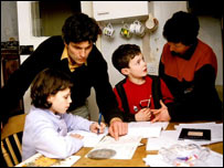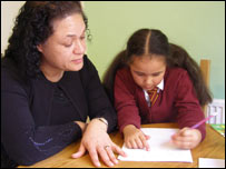 学生做作业,在学校做课堂作业,回到家做家庭作业,天经地义。天经地义吗?有人提出了挑战:彻底废除家庭作业。而且,要求最强烈的,不是做作业的学生,而是布置作业的老师。 敲开Roxanne家的大门,顿觉来得不是时候:Roxanne正在辅导六岁的小女儿Alana做作业。见我拿出录音机,打开笔记本,摆出采访的架势,Alana满怀希望的问妈妈,“我能到客厅看电视吗?”“不行。你到隔壁去把今天的家庭作业做完,我呆会儿检查通过了才能看电视。” Roxanne一副没商量的口气。 Roxanne是位单身母亲,一个人拉扯两个孩子。大女儿Rayona上中学,面临初中汇考(GCSE),正是较劲的时候。小女儿Alana上小学一年级,做学生的日子刚刚开始。 Roxanne的家门口就有一所小学,近得恨不能打开窗户就能把孩子扔进校园里。英国的小学从五岁开始上Reception,相当于中国的学前班。Alana在家门口上了一年,新学年开始后,Roxanne把女儿转到了离家开车需要半个小时的一所教会学校。 为孩子“找”家庭作业而转学的家长