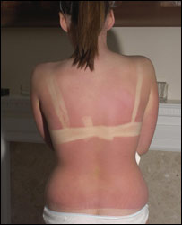 也怪不得姑娘们。杂志上、电视上,从歌坛到影坛,从舞台到政坛,一身全天候、全年候的古铜肤色是名人明星的“必须色”。它几乎成了“成功人士”的标签。 可是,要晒出一身古铜色却不容易,至少是在英国。首先这天就不争气,上周刚有几个大太阳天,写了篇“日光浴”,发完稿子回家的路上就淋了个落汤鸡。 其次,即便有太阳可晒,要晒出一身古铜色,不但要有毅力,还要有不怕牺牲的精神。过度的日光照射可导致皮肤癌。英国每年死于皮肤癌的人数过去10年中翻了10番,达到2,300人。即便不得癌,整天晒太阳,加速皮肤老化、起皱是肯定的。 于是,各种自我上色(self-tan)的霜啊、露啊的大行其道也就不难理解了。事实上,它是一年价值4,100万英镑的大生意。 “上色”成了英国人一大爱好。讲究一点的,到专门的美容店,花30镑左右,让穿的像防化兵似的美容师拿着喷雾器从头到脚喷一遍。不愿花那个钱,就买瓶“上色露”回家自己抹。 阶级的烙印 一旦抹上了,许多人发现就有点欲罢不能。一脸一身亮铮铮的古铜色,不但形象很健康,更重要的是,它把有钱、有闲、成功等等的潜台词都写在了脸上。 要是没有钱、没有时间一年里地中海游两圈、夏威夷走三趟,哪来的一身古铜色?