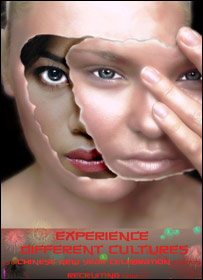 我被他的‘画皮’设计主题震撼了——一个西方美女用手拿下自己的脸,露出里面一张极具东方特色的美女脸。下书几个字“体验不同文化——拉大学生会中国新年庆祝志愿者招募中”。这样大胆又绝妙的创意用在英国学生会举办的中国新年上是再棒不过的了。 果然,海报一贴出去,各界反响强烈,志愿者报名积极踊跃。当我为‘画皮’海报取得的成功高兴不已,兴冲冲的去找Pawel一同分享时,他非常谦虚地给我来了句:“我不太喜欢它,这不是我一贯的风格!”我当时听了,差点没晕倒:那要是按照他的风格,还要怎样的惊天动地啊?! 而Pawel也确实没让我失望,第二张宣传活动的海报更是彰显了他的超强创造力。他用一百多个与我们活动相关的中英文词语,包括活动的时间、地点、内容、意义、举办单位等等拼成了一只牛的身子,栩栩如生,惟妙惟肖整体感觉颇有中国剪纸艺术的特点,背景却是用电脑3D浓墨重彩的渲染了一幅巨龙从高山上翻腾而下,青松、亭子掩映其间的西洋油画。这一中一西,一静一动的强烈对比,则真叫人拍案叫绝。
