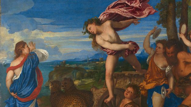 You could easily miss it amid the romp and revelry that surrounds Bacchus, the Roman god of wine, as he leaps from his cheetah-drawn chariot after clapping eyes on the beautiful Ariadne: that tiny detail that transforms Titian's passionate painting of love-at-first-sight into something a little less fragrant.