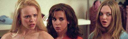 Yn yr ysgol buan iawn y gwel Cady ddiniwed fod yn rhaid perthyn i'r gang iawn o ferched gyda'r Plastics dan arweiniad yr atgas y brydweddol Regina (Rachel McAdams) yn drechaf o'r gangiau hynny.