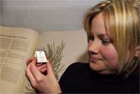 | Llyfr bach - diwrnod mawr Morfudd Bevan-Jones, cynorthwydd arddangosfeydd yn y Llyfrgell Genedlaethol gyda'r llyfr lleiaf yn y byd.