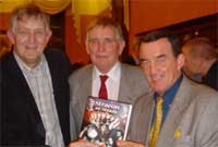 Yn y llun: Alun Wyn Bevan, awdur y llyfr, gyda'r cyn chwaraewyr,Terry Davies a Phil Bennett.
