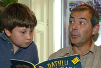 Roedd y prifardd Myrddin ap Dafydd, perchennog y wasg, yno gyda Malachy Doyle i gynnal gweithdai adrodd straeon a chreu ar lafar gyda'r plant.