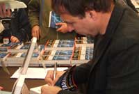 Wedi'r sgwrs, treuliodd Anthony Horowitz dros awr brysur yn arwyddo llyfrau ar stondin Siop Lyfrau Elfair oedd yn rhan o stondin Cyngor Llyfrau Cymru.