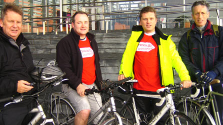 Mae Iestyn, John, Jonathan ac Andrew ar eu ffordd yma drwy'r gwynt a'r glaw. Dymuniadau gorau iddyn nhw weddill eu taith ac edrychaf ymlaen at fod yn un o'r dorf fydd yn eu croesawu ger Cadeirlan Copenhagen am hanner dydd yfory, dydd Sadwrn.