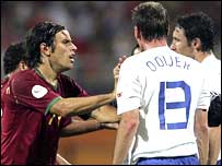 Cafodd Deco a Costinha eu hel o'r maes i Bortiwgal, gyda Khalid Boulahrouz a Gio van Bronkhorst yn cael cawod cynnar i'r Iseldiroedd.