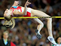 Penderfynodd y Gymraes, oedd yn 10ed ym Manceinion pedair blynedd yn ôl, i dynnu yn ôl o'i thrydydd cais i glirio 1.91m ar yr eiliad olaf.