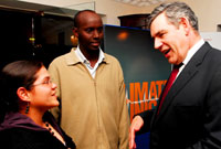 Alun Michael oedd noddwr y cyfarfod ymylol a drefnwyd wedi'r gwasanaeth hefyd ac fe siaradodd dau o'r cerddwyr yn y cyfarfod hwnnw - Chirha o'r Congo a Rachael o Newcastle.