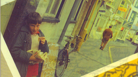 Mae'n cychwyn trwy ddweud; "Mewn tref wyntog, wleb ar lannau'r Corrib yn Iwerddon, ger y cefnfor, y ces i fy magu. Yno y bûm yn Gymro alltud, yn Gardi oddi cartre, yn Wyddel bach, yn drafaeliwr ar ei brifiant, yn ieithydd rhonc, yn gerddor ac yn glust i gyd, yn gariad i... smo fi'n cofio pwy, yn fardd talcen slip eisiau bod yn wreiddiol, eisiau ei lun yn y papur, yn frawd bodlon, yn fab afradlon..."