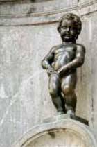 Bachgen bach yn pi-pi yw un o hynodion pennaf Brwsel!