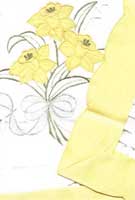 Lliain bwrdd Mewn amlen arall a dderbyniais yn ddiweddar yr oedd y lliain bwrdd harddaf a welsoch erioed ag arno Gennin Pedr mewn gwaith appliqué