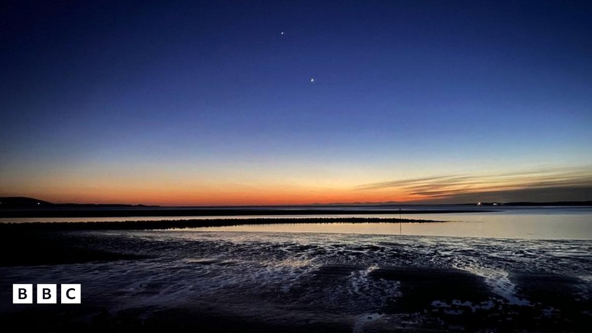 Roedd planedau Gwener a Iau i'w gweld yn yr awyr wrth iddi fachludo yn Llanelli