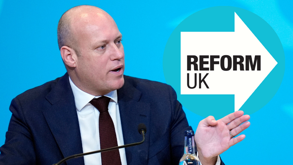 Nigel Farage a Dan Thomas yn dal maniffesto'r blaid Reform