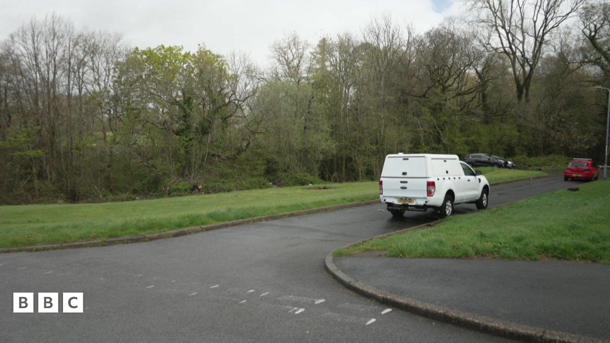 Dywedodd y llu eu bod wedi derbyn adroddiad o dri dyn, gydag un yn cario gwn aer, yn mynd at grŵp o blant - un ferch 14 oed a dau fachgen 14 a 15 oed - yn y coetir y tu ôl i'r stryd.