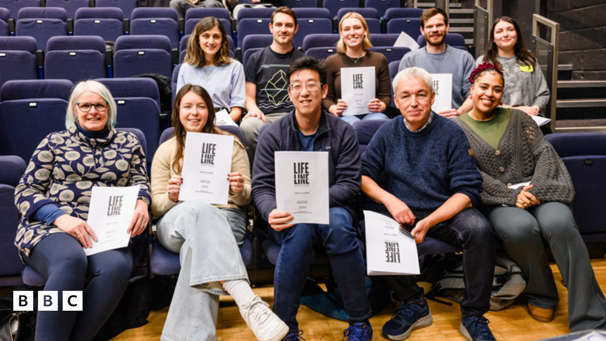 Dr Eleri Davies (chwith) a'r cast yn paratoi ar gyfer perfformiadau Lifeline