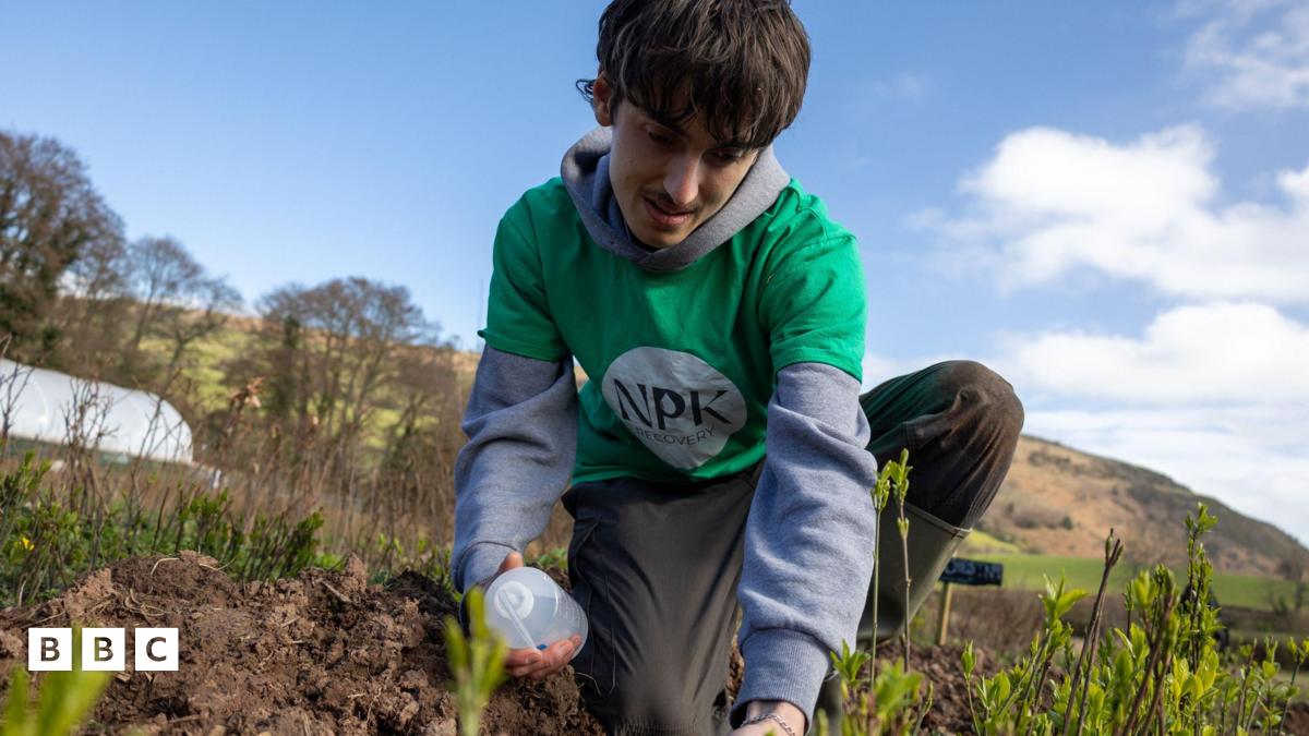 Y bwriad yw defnyddio'r gwrtaith i helpu tyfu 4,500 o goed cynhenid - fel ffynidwydd a ffawydd - i'w plannu ym Mharc Cenedlaethol Bannau Brycheiniog.