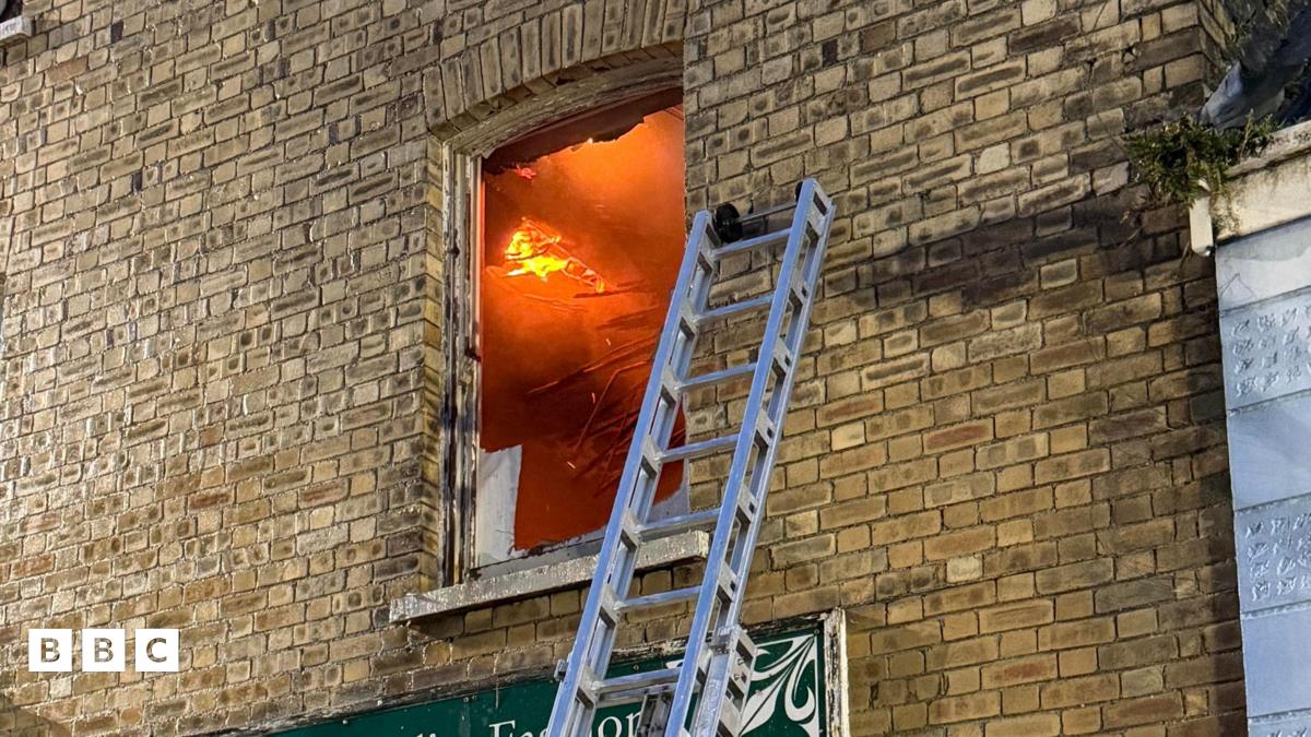 Am 10:30 fore Mawrth roedd dwy injan dân a chraen yn bresennol tra bod swyddogion yn asesu'r sefyllfa.