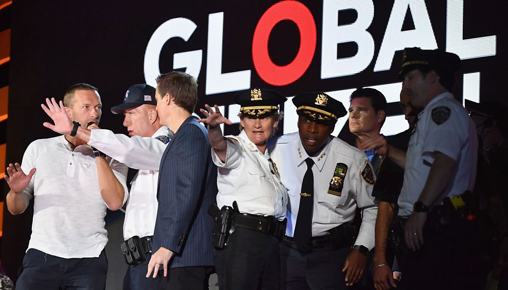 Scroll down for Chris Martin providing safety announcements, Lana Del Rey confronting Kanye West and Arctic Monkeys serenading Chris Waddle.