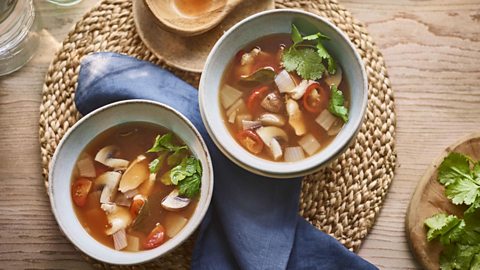 Bone broths naturally have the most protein (which supports immune health) of all the types of broth, but you can add protein-rich ingredients like tofu, tempeh, beans or lentils to a simple vegetable version. Tinned beans and lentils are ready cooked so are great for throwing in – they come with the added benefit of fibre, which nourishes beneficial gut bacteria.