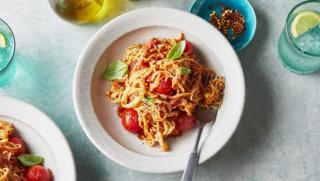 Are you the sort of cook that can burn pasta? Well, this is your lucky day. This classic Italian dish of "murdered" spaghetti is browned in the pan before being cooked using the absorption method. Paired simply with tomato, garlic and chilli, it has plenty of fresh Italian flavour.