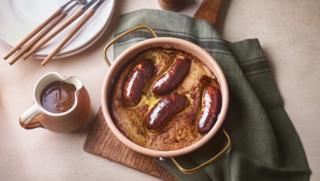 Delicious golden batter puffed up around juicy grilled sausages – it’s the perfect family-friendly supper and cooks so much faster in an air fryer.