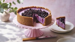 This light and creamy no-bake cheesecake is gloriously purple, thanks to the addition of sweet blueberry purée. The gingernut biscuit base is the perfect complement.
