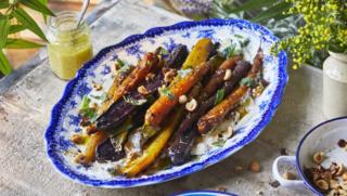 A fantastic mix of sweet and savoury makes for the perfect barbecue salad. These firm but tender smoky maple carrots are served with creamy yoghurt and a hazelnut vinaigrette. A perfect veggie-centric dish or a interesting side to go with meats.
