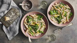 A quick and delicious creamy pasta with a few tweaks to keep it healthy. Whole wheat pasta adds fibre and using reduced-fat crème fraîche keeps the calories down. You can add chopped cooked chicken or diced ham at the same time as the crème fraîche if you like. Add a splash of water and heat through until hot throughout.