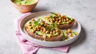 You get a double legume hit with this easy breakfast recipe. Tahini is a wonderfully rich source of calcium and protein. This is a glorious combination that works exceptionally well to change up beans on toast. Any soft herbs will work like dill, coriander or chives.