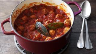 Instead of making up a meatball mixture with minced meat or meats, parmesan, garlic and egg, I simply squeeze the stuffing out of about half a kilo of Italian sausages and roll it into cherry tomato-sized balls.