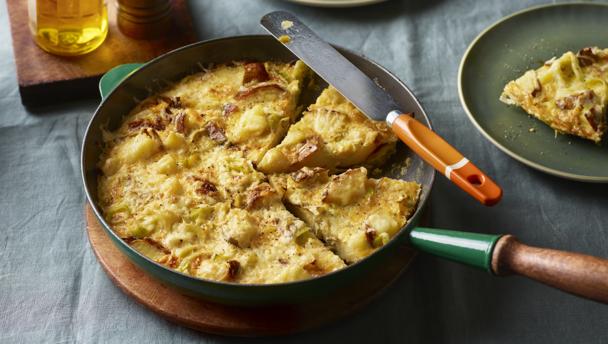 To fry leeks: put a frying pan over a medium heat. Add 2 tbsp butter and allow to melt. Add a large handful of sliced leeks and a pinch of salt, stir and reduce the heat to low. Allow the leeks to cook gently for 8–10 minutes, stirring occasionally until soft.