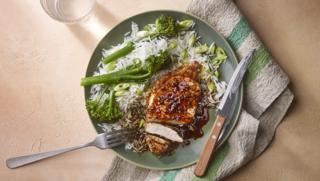 Deliciously sticky soy-glazed pork makes a quick supper, if you use an air fryer. Serve with rice tossed with sliced spring onions, if you like.
