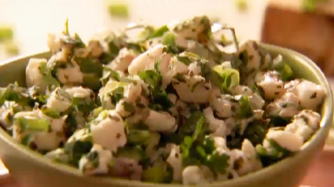 Speedy GonzalesNigella cooks Latin-influenced food the express way. Recipes include a standby sweetcorn chowder topped with toasted tortilla chips for a late-night treat, a quesadilla, and a dinner of 'Roqualmole' (Roquefort and guacamole) dip served with a cool cured fish ceviche, and margarita ice cream.