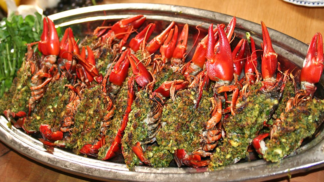 In this programme: Valentine goes on the charm offensive as he takes on the ladies of the Women's Institute by entering his sloe gin and blackberry jelly in a competition to find the tastiest dessert; sources the two main ingredients for his quick and simple crayfish with hazelnut stuffing from the banks of the River Kennet; and goes on a mission to convert some clay pigeon enthusiasts to the delights of the real thing with a warm autumn salad of wood pigeon, roast chicory and pickled walnuts.