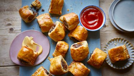 Brush the edges with beaten egg, then fold the pastry over the filling and crimp the edges with a fork to seal. Cut into sausage rolls, to the size you prefer.
