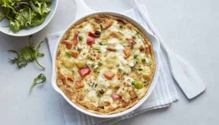 Loosen the sides of the frittata and slide onto a board. Cut into wedges and serve with a green leafy salad.