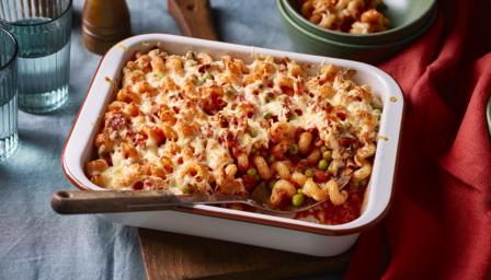 This simple budget-friendly pasta bake uses a pre-cooked tomato sauce and is finished under the grill so you don’t even need to turn the oven on.