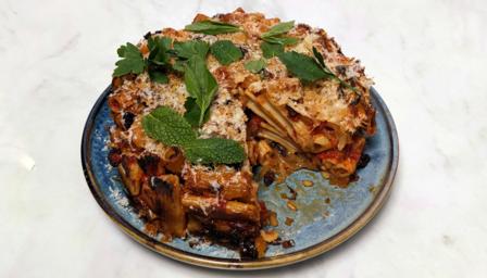To make the pasta cake, preheat the oven to 200C/180C Fan/Gas 6.